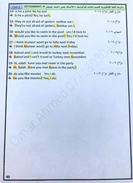 موضوع التنقيط الـ(Punctuation) للصف الثالث المتوسط مع الأمثلة وتمرين كتاب النشاط الخاص بالموضوع والأسئلة الوزارية مع الحلول .