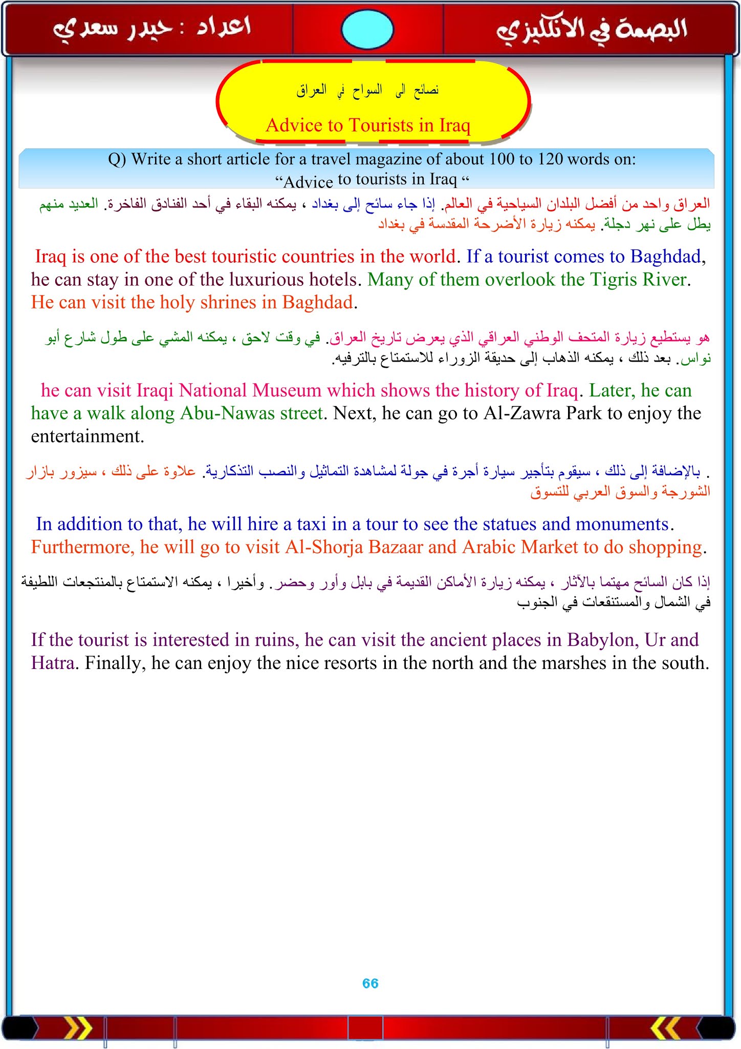 انشاء نصائح الى السواح في العراق مع الترجمة كامل