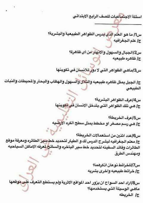 ملخص اجتماعيات رابع ابتدائي مع اسئلة واجوبة