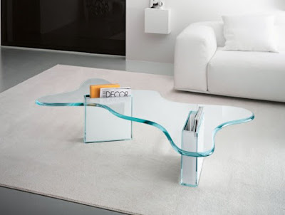 وقد ابدع المصممون في ابتكار اشكالا كثيرة من الطاولات والتي تتماشى مع الامكانيات التي يسمح بها الزجاج لتشكيله .
