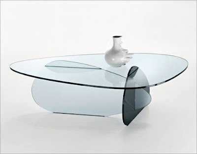 وقد ابدع المصممون في ابتكار اشكالا كثيرة من الطاولات والتي تتماشى مع الامكانيات التي يسمح بها الزجاج لتشكيله .