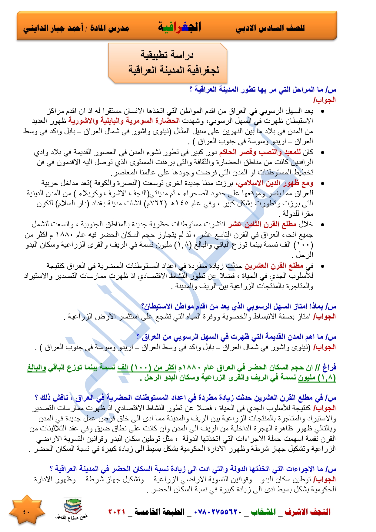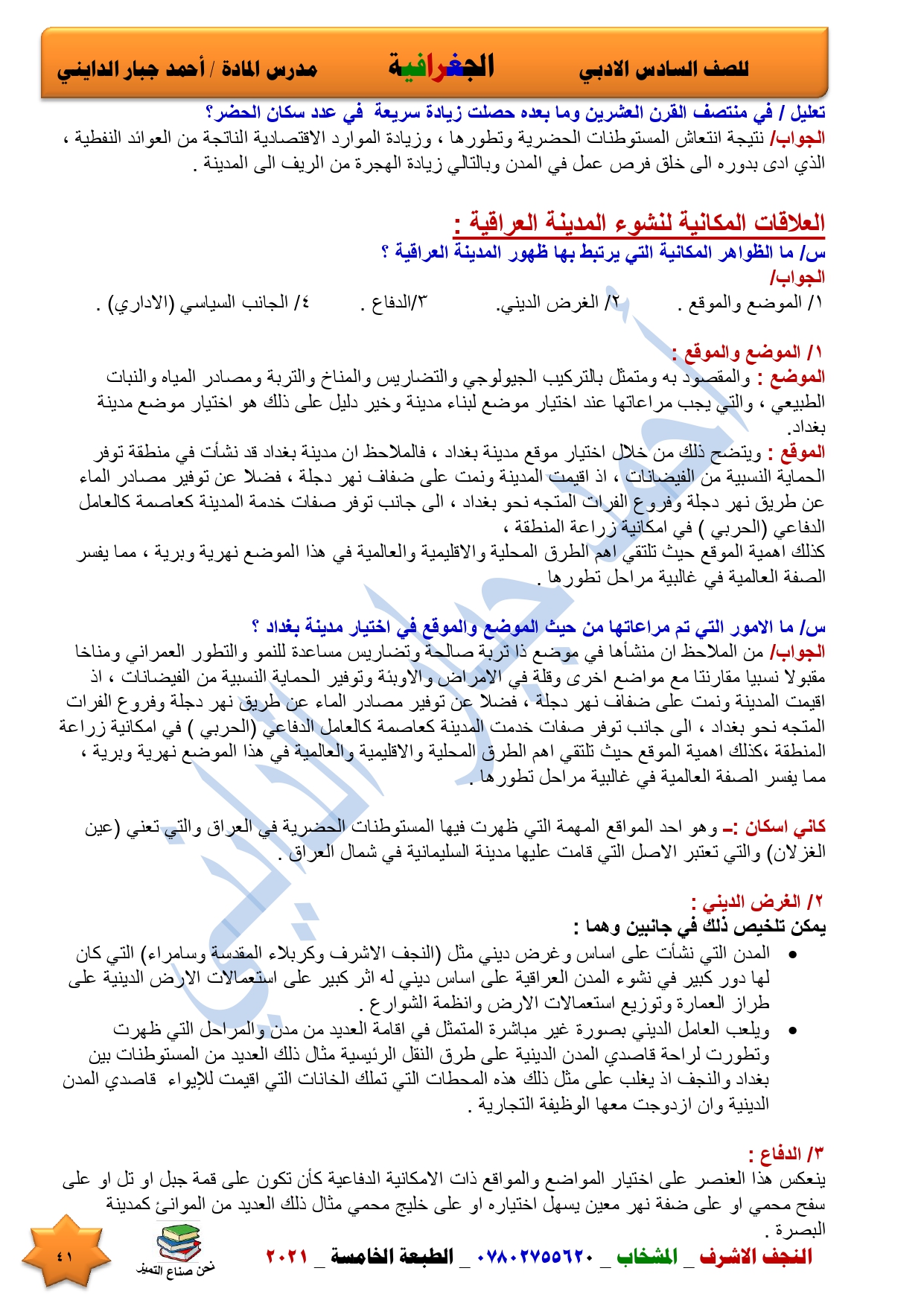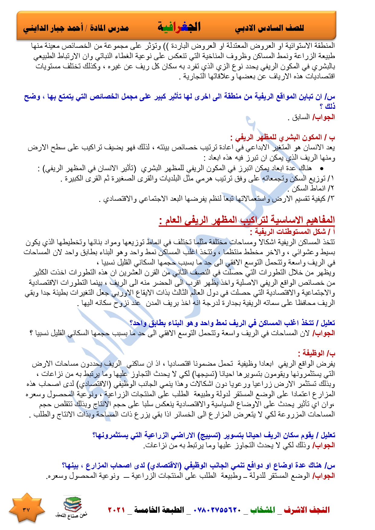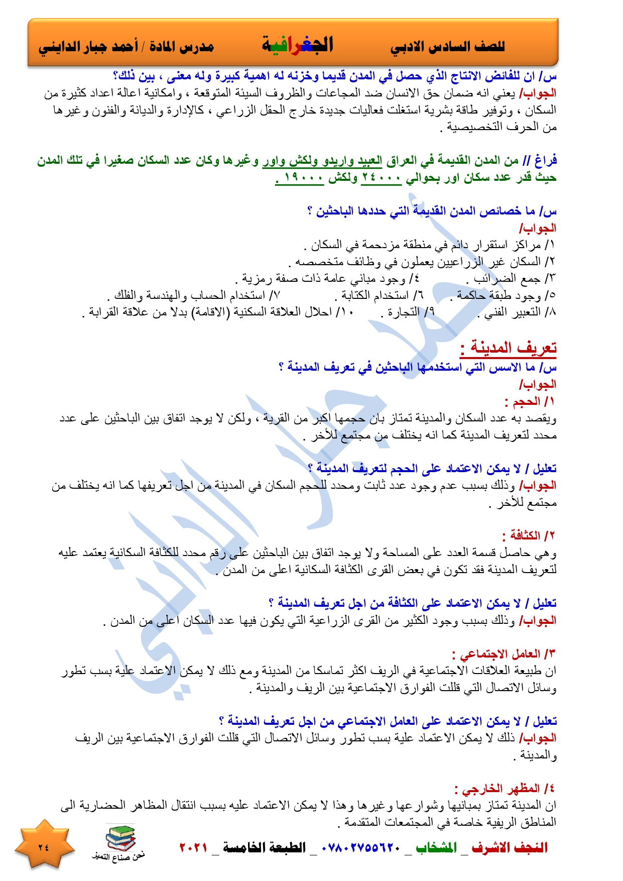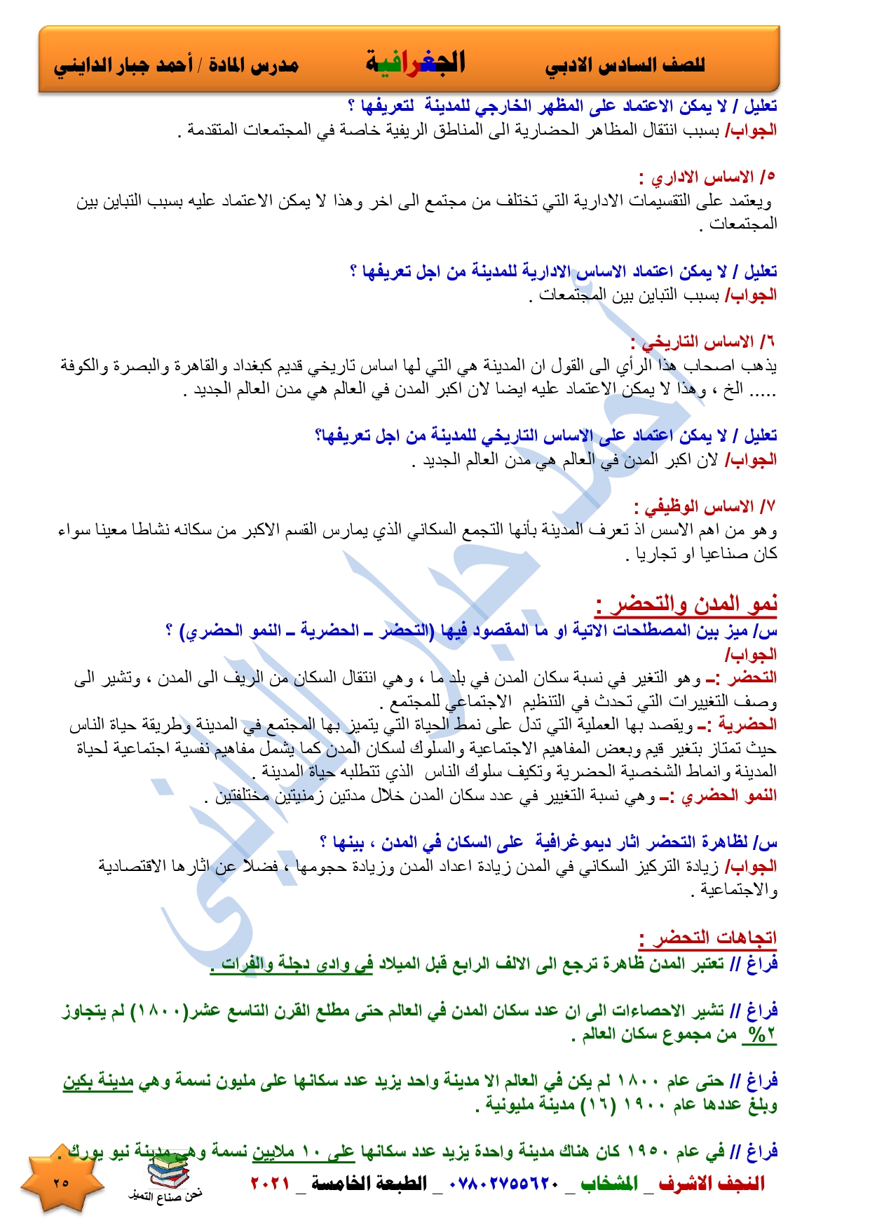 نقدم لكم ملخص لضمان العبور في امتحان الجغرافية ومساعد لطالب السادس الادبي اعداد الاستاذ احمد جبار الدايني