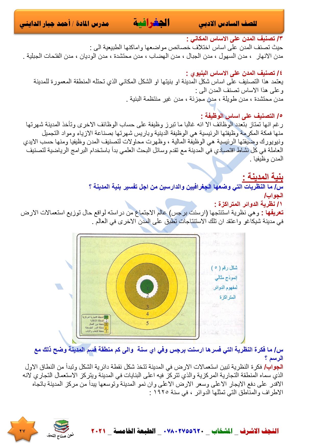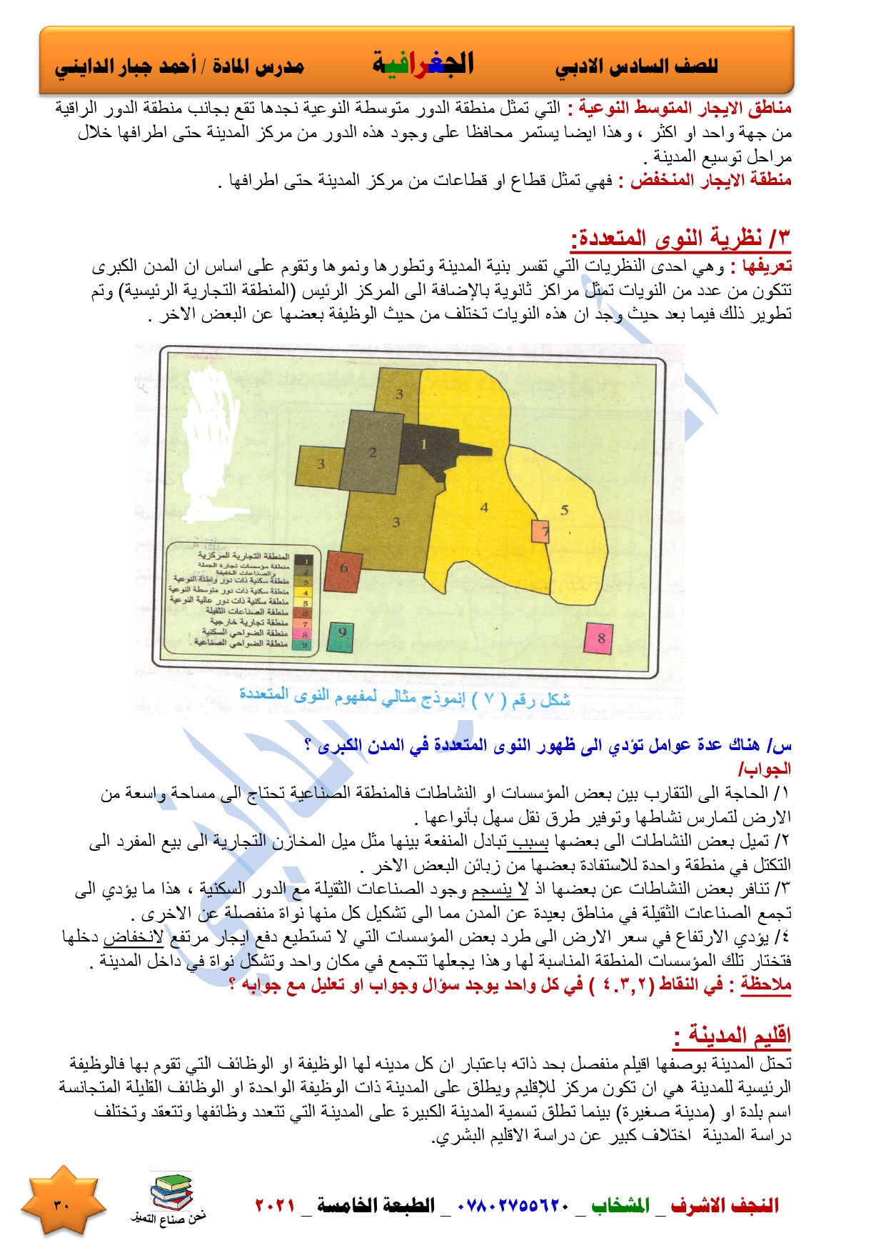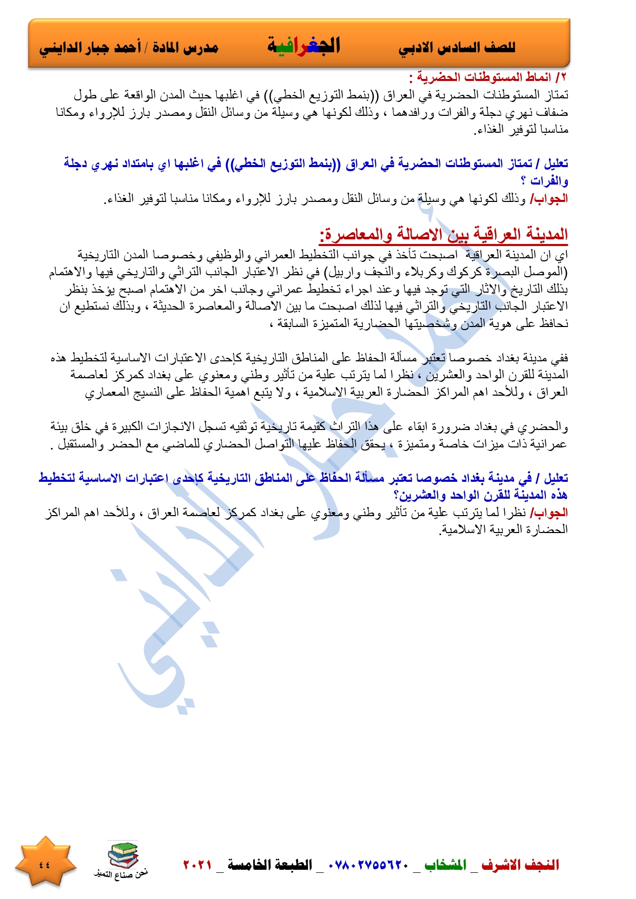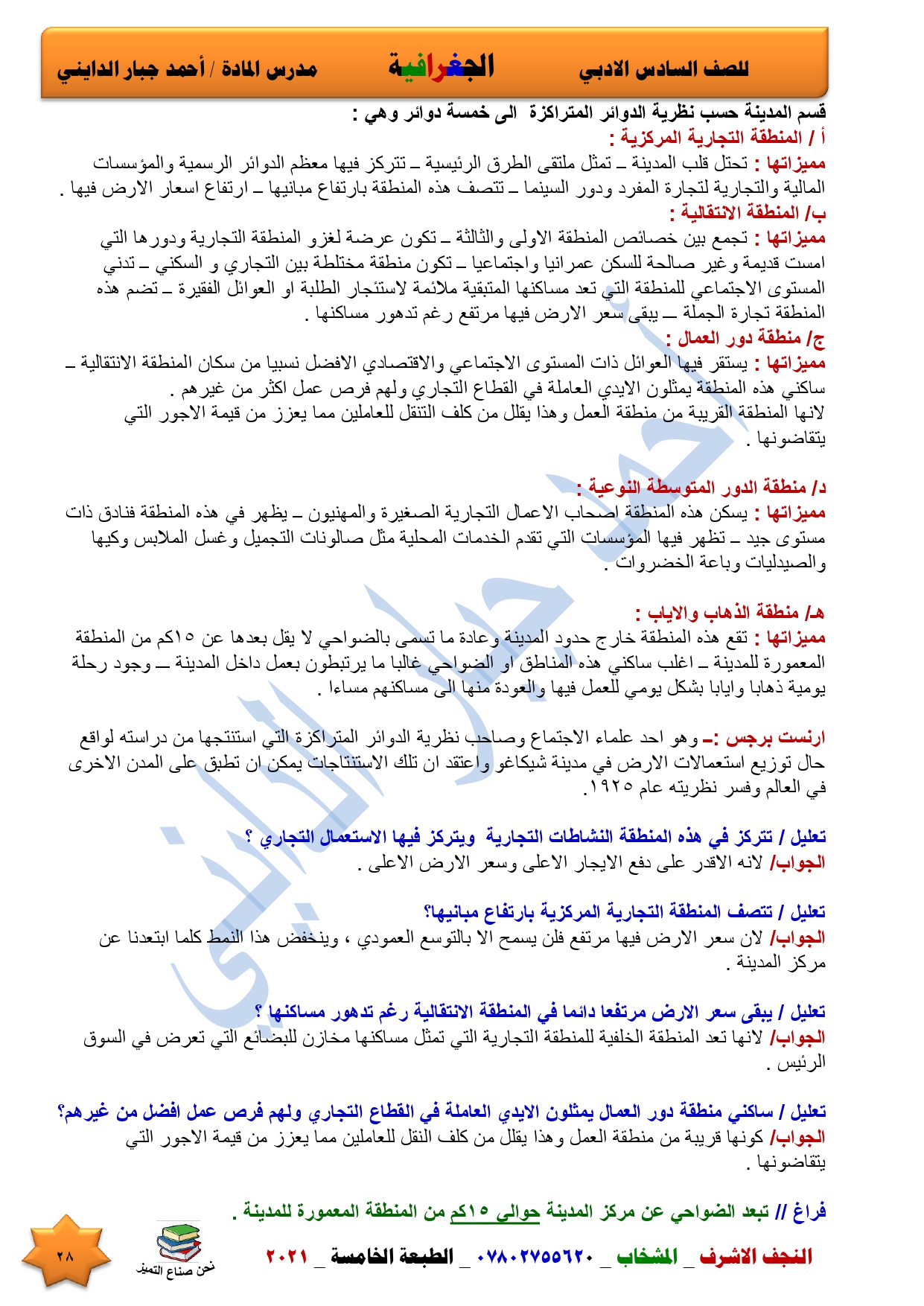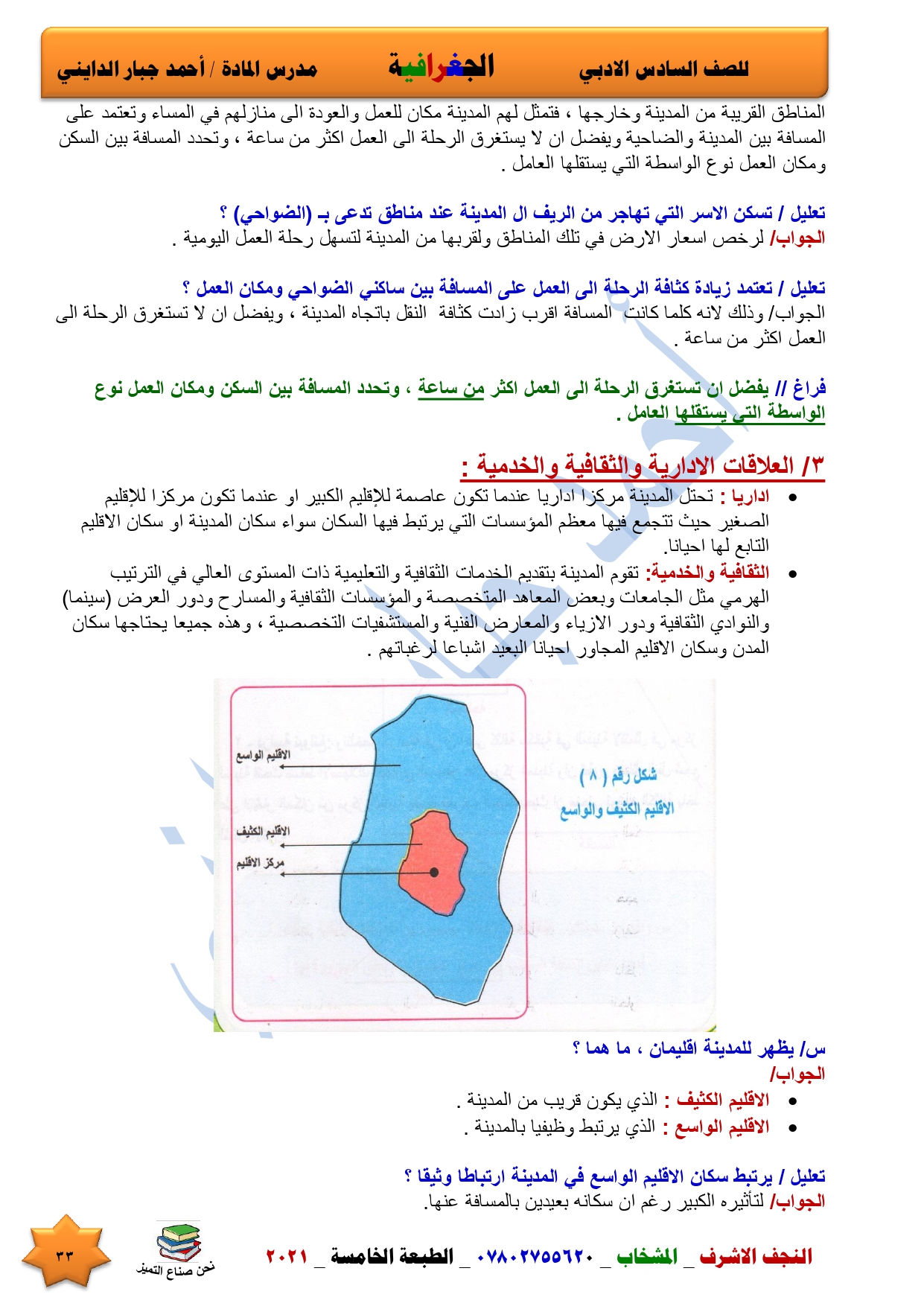 نقدم لكم ملخص لضمان العبور في امتحان الجغرافية ومساعد لطالب السادس الادبي اعداد الاستاذ احمد جبار الدايني