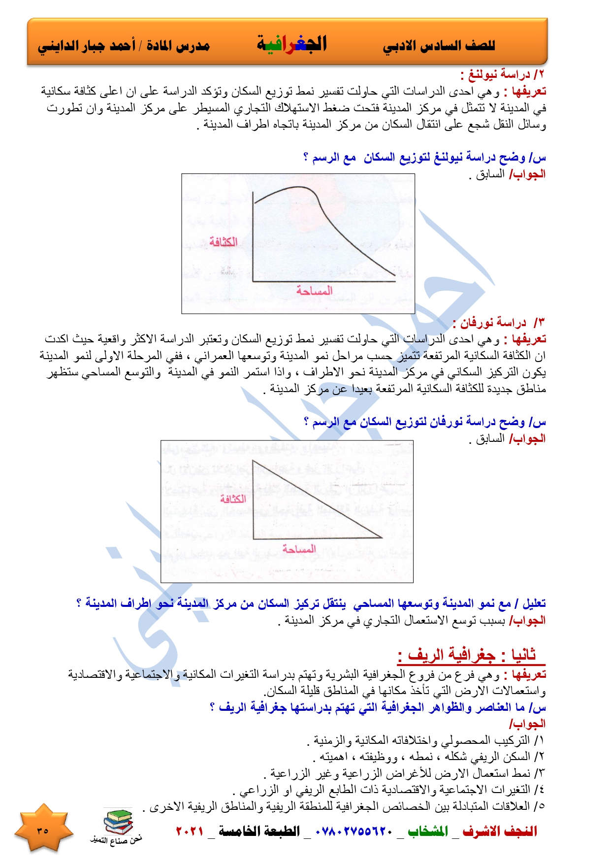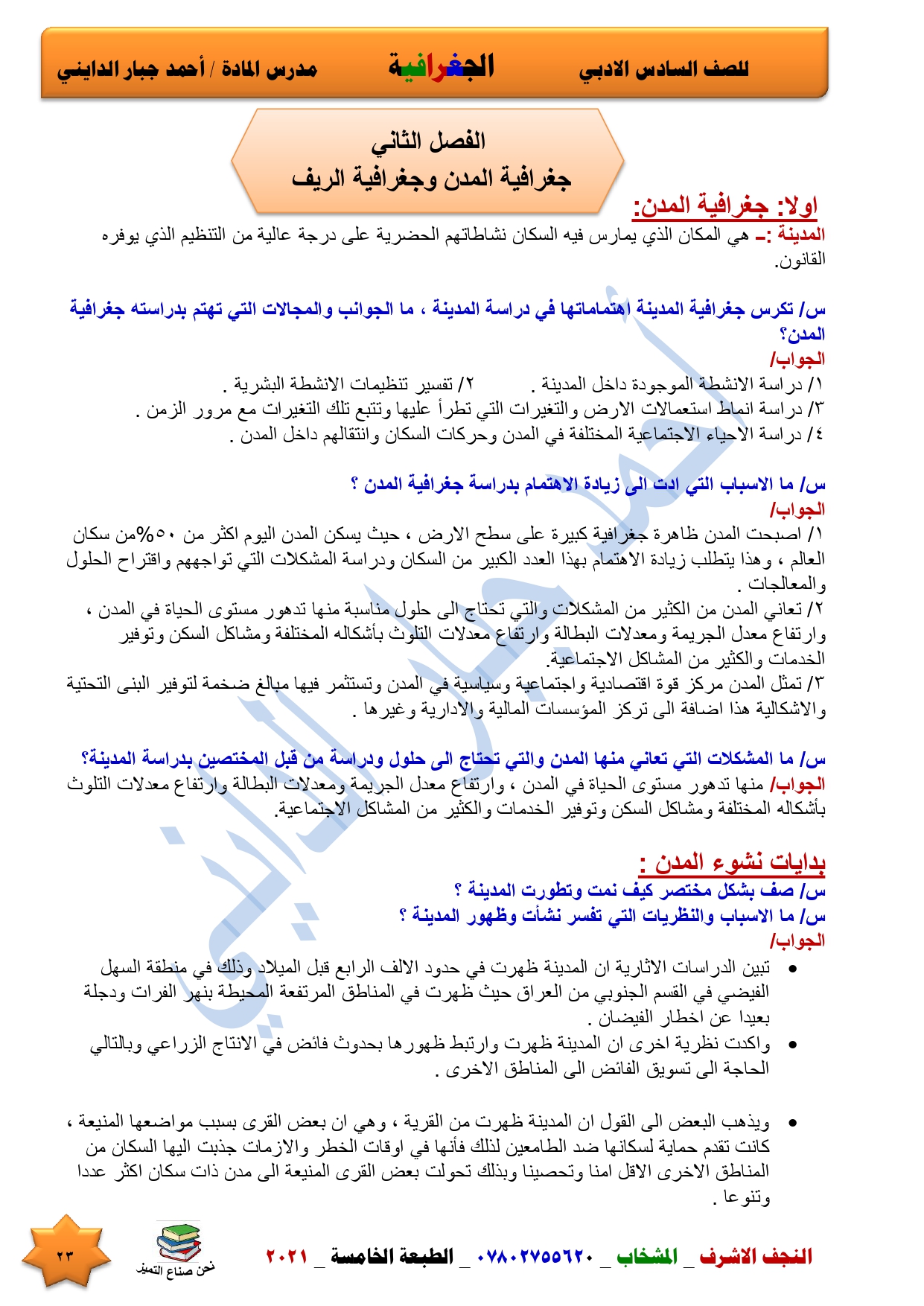 ملخص الفصل الثاني جغرافية المدن والريف سادس ادبي 2021 حسب الحذف والتقليص من التربية