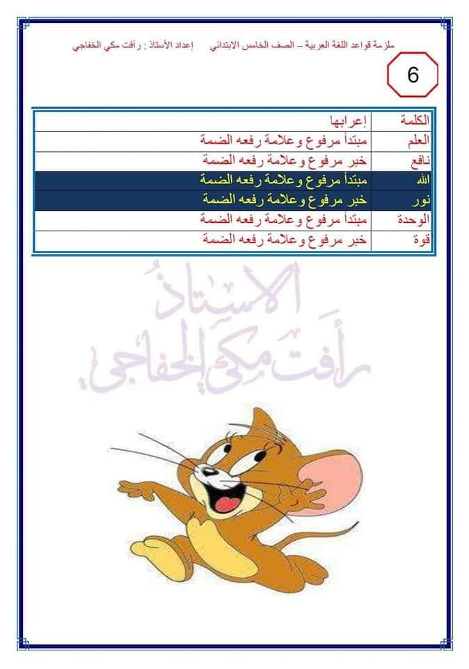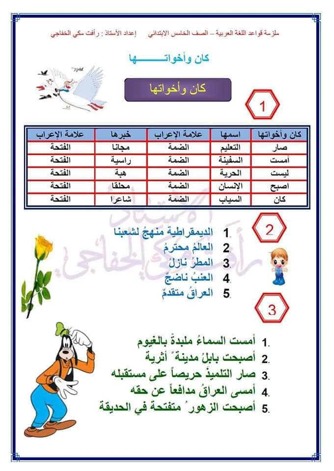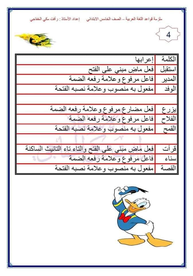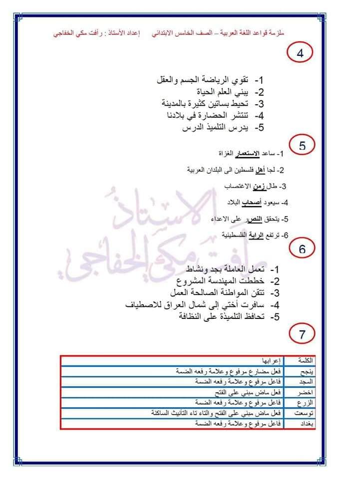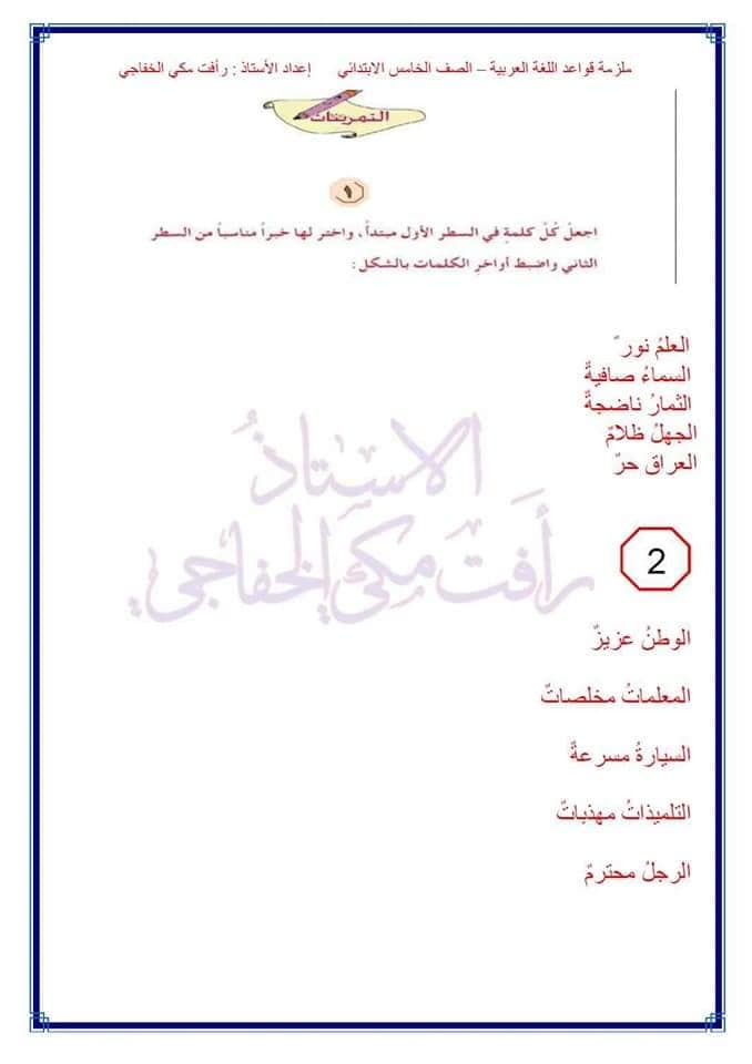 اوراق حل تمارين قواعد اللغة العربية خامس ابتدائي للمواضيع التالية