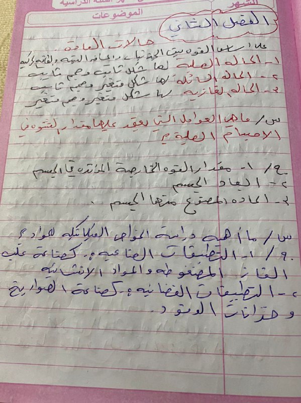 ملخص الفصل الثاني حالات المادة فيزياء الرابع العلمي الفصل الثاني : حالات المادة