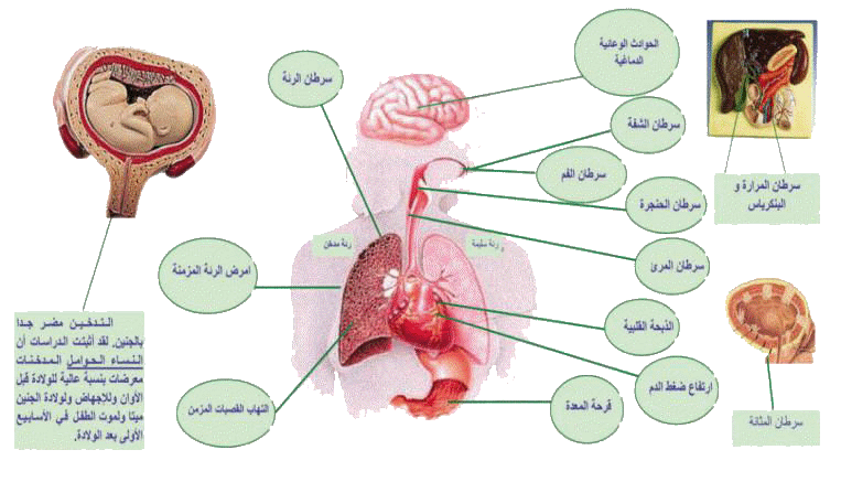التدخين يسبب السرطان، أمراض القلب والشرايين والرئة والجلطات.
