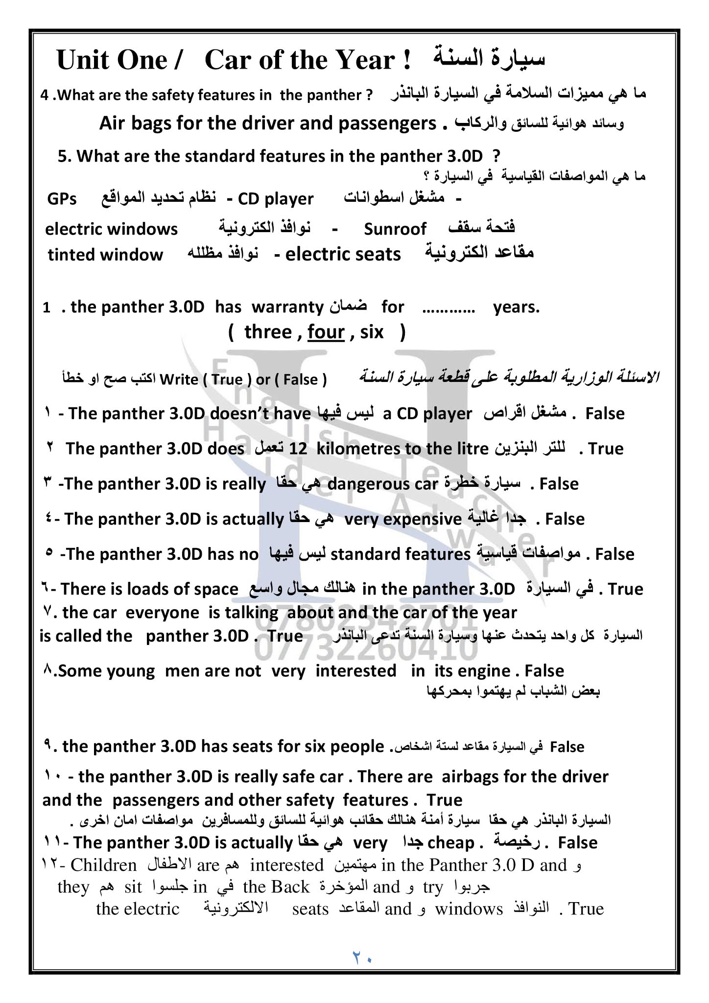 ملخص الانكليزي لثالث متوسط اليونت الاول للعام 2021 بعد التكييف والحذوفات الاخيره من التربيه Unit One