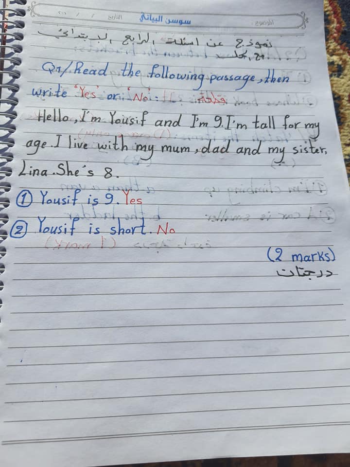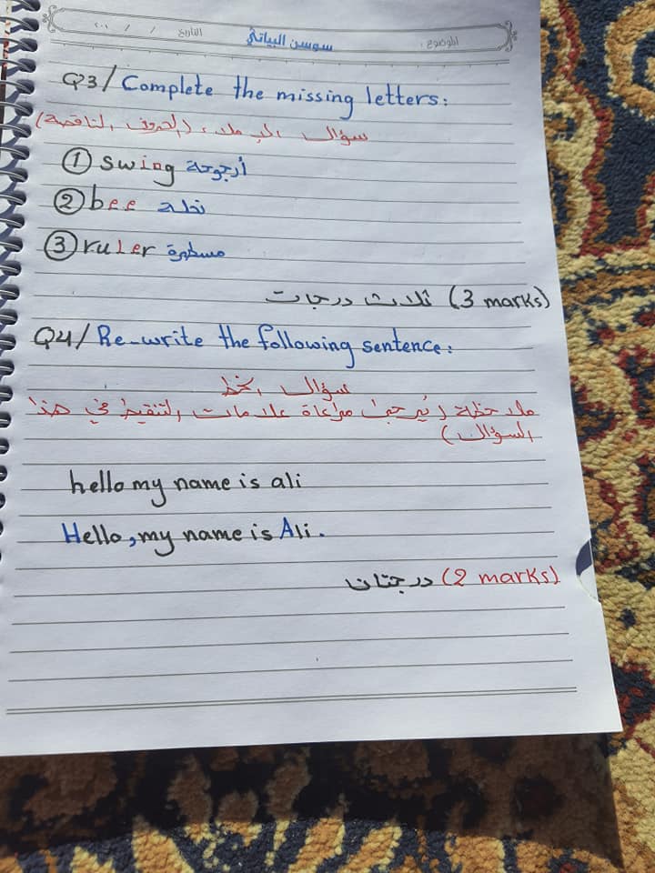 اسئلة انكليزي مع الحل الصف الرابع الابتدائي للشهر الاول الوحدة الاولى