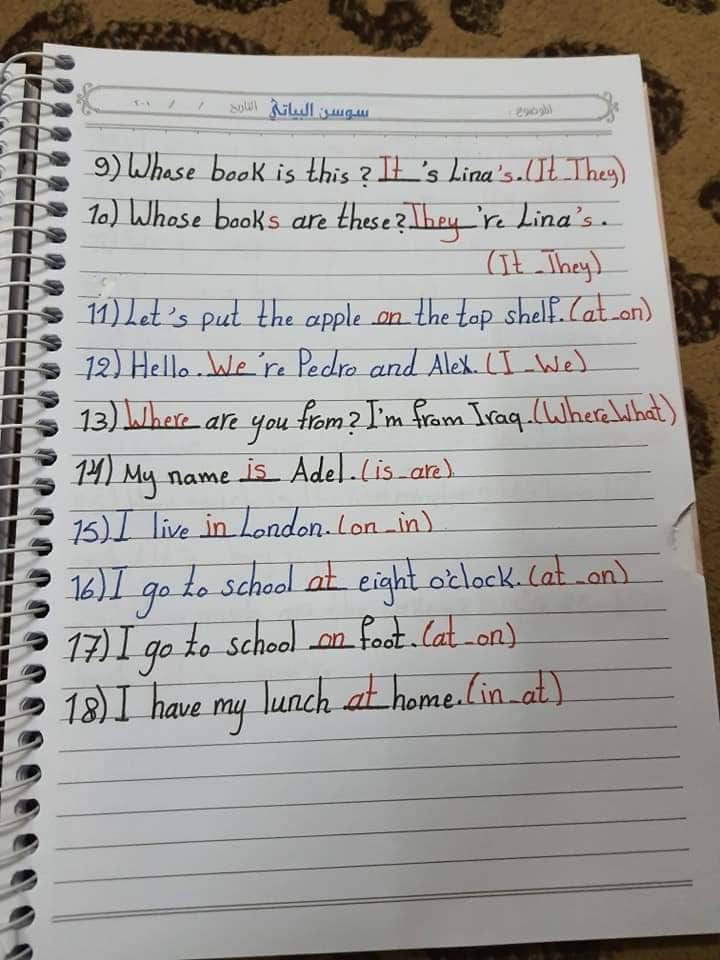 قواعد اللغة الإنكليزية للصف الرابع الإبتدائي للفصول الثلاثة الأولى