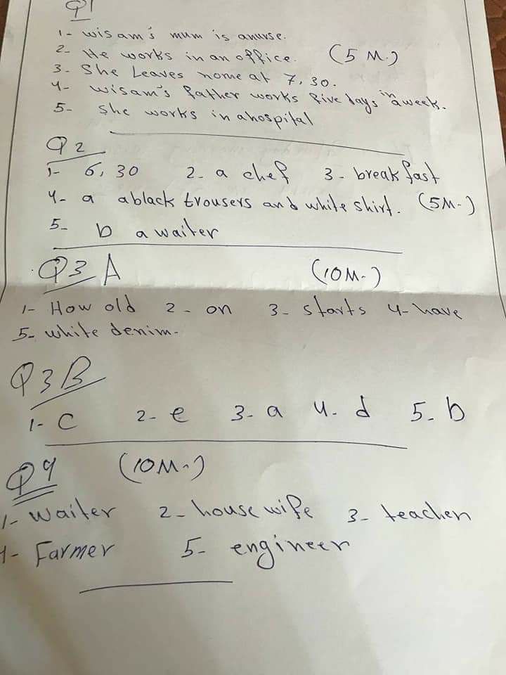 نموذج اسئلة انكليزي سادس ابتدائي الشهر الاول