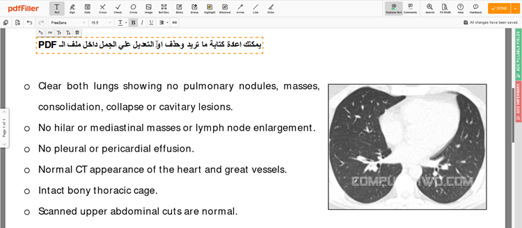 اداة PDFFiller.com والمتاحة للاستخدام اونلاين بالتأكيد تمتلك امكانيات خرافية في التعديل علي ملفات الـ PDF من حيث تعديل النصوص داخل الملف وبطريقة تجعل أن التعديلات غير ملحوظة اطلاقاً، وبعد اتمام التعديلات يمكنك تحميل الملف مرة اخري بعد التعديل مباشرة، ولاحظ أن هذه الميزة في هذه الاداة جميلة جداً ودقيقة وستحتاج الي تجربتها بنفسك.
