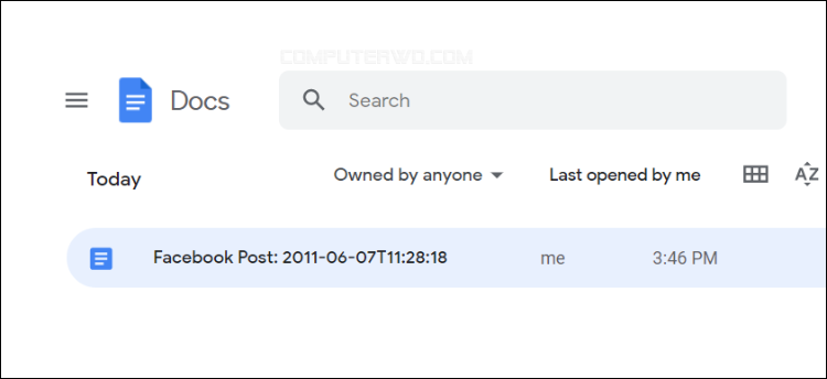 بعد انتهاء المهمة، يمكنك الانتقال إلى خدمة Google Docs على الرابط docs.google.com وستجد مستند يحمل اسم "Facebook Post" وهو مستند واحد فقط يجمع كل المنشورات التي قمت بمشاركتها على حسابك بدلًا من إنشاء مستند جديد لكل منشور على حدى، علمًا بأنه سيتم كذلك تضمين الصور الخاصة بالمنشورات (إن وجد) ضمن نفس المستند. يمكنك الآن الاحتفاظ بهذه المنشورات حتى بعد حذف حسابك على فيسبوك، أو تنزيلها على جهازك.