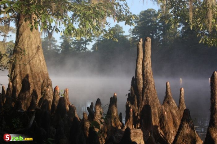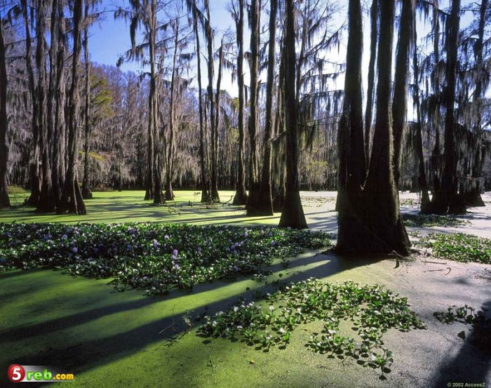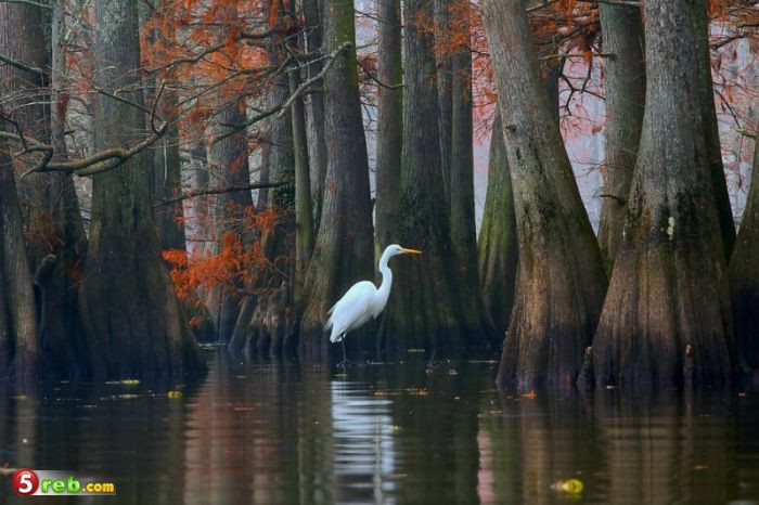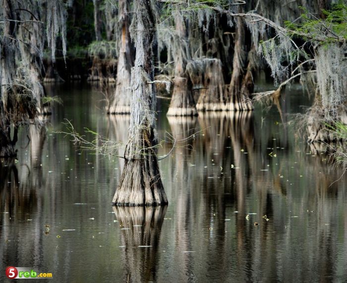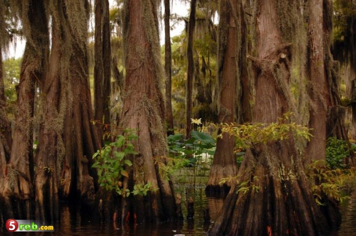 اشجار السرو في هذه البحيرة تنمو في الماء المباشرة مما يعطيها شكلا مميزا ونموا سريعا حيث تساعد هذه الاشجار على منع انجراف التربة الذي تسببه الاعاصير والامطار