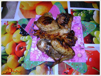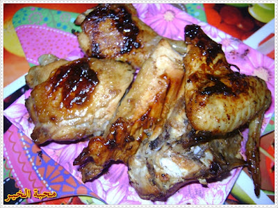 1- نغسل قطع الدجاج جيدا ونضعها في المقلاة