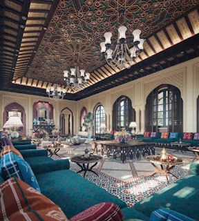 غرفة معيشة ذات طابع تركي تم تصميمها باابتكار
