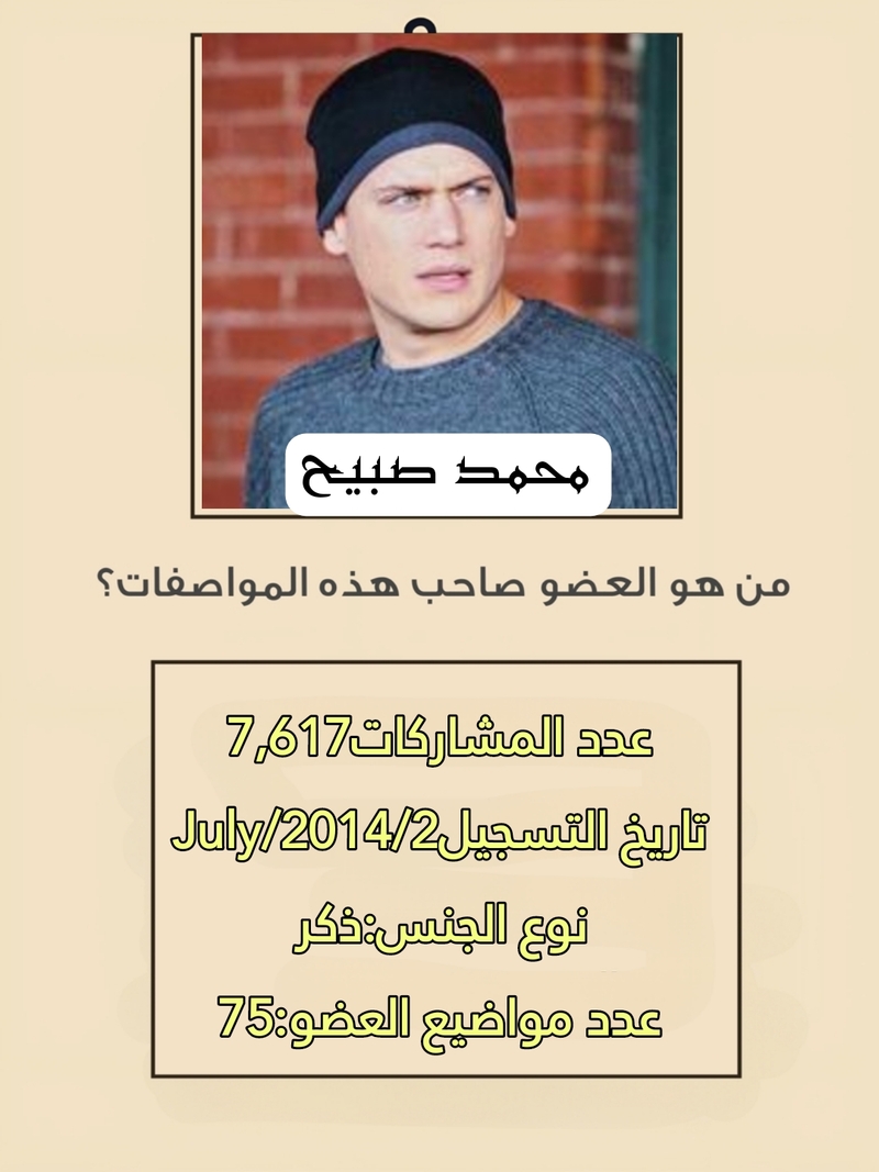 10 نقاط لمن يعرف اسم العضو المقصود بمعلوماته
