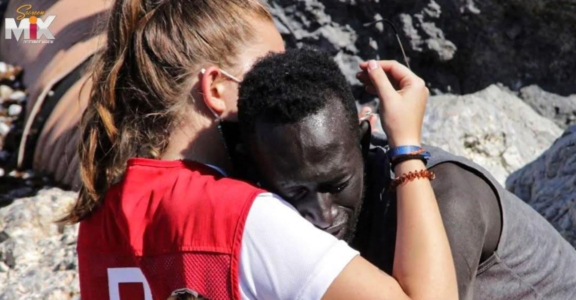 انتشرت صورته مع المتطوعة في كل أنحاء العالم لتكون عنوان للإنسانية