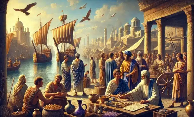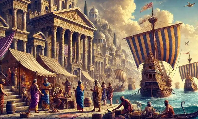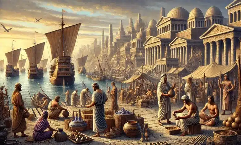 • التجارة البحرية: أسسوا شبكة تجارية ضخمة امتدت عبر البحر الأبيض المتوسط، مما ساعد على نشر السلع والثقافات المختلفة.