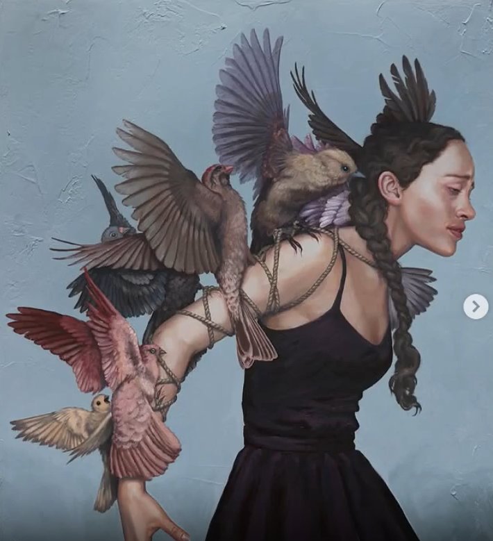 اللوحة رُسمت عام 2019 وهي بعنوان (صنعت لنفسي بعض الأجنحة).