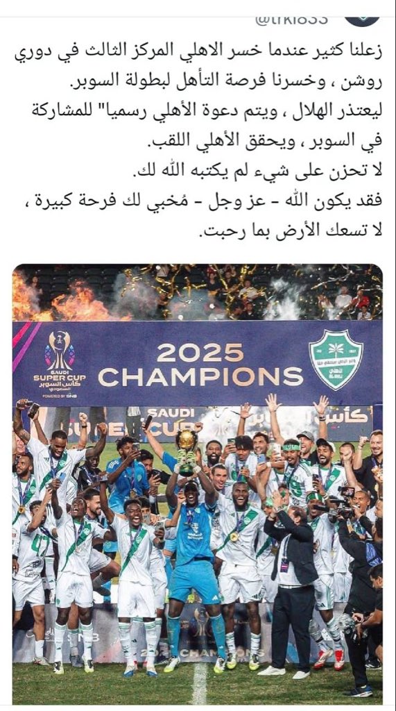 ألف مبروك للأهلي وجماهيره الوفية التتويج بكأس السوبر السعودي ..فرحة مستحقة