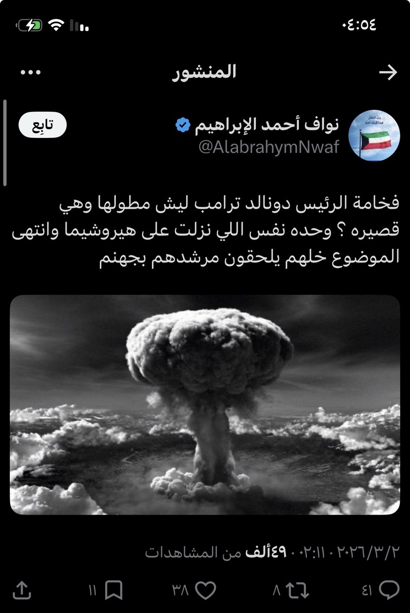 المشاركة الأصلية كتبت بواسطة مهدويّة.❀ - مو بس حكّام العرب جيفة التاريخ، كلّ الأعراب المنافقين في المنطقة على نفس الديدن والخسّة!! - حظر التصوير ما صايرة بس عند أهل البعران