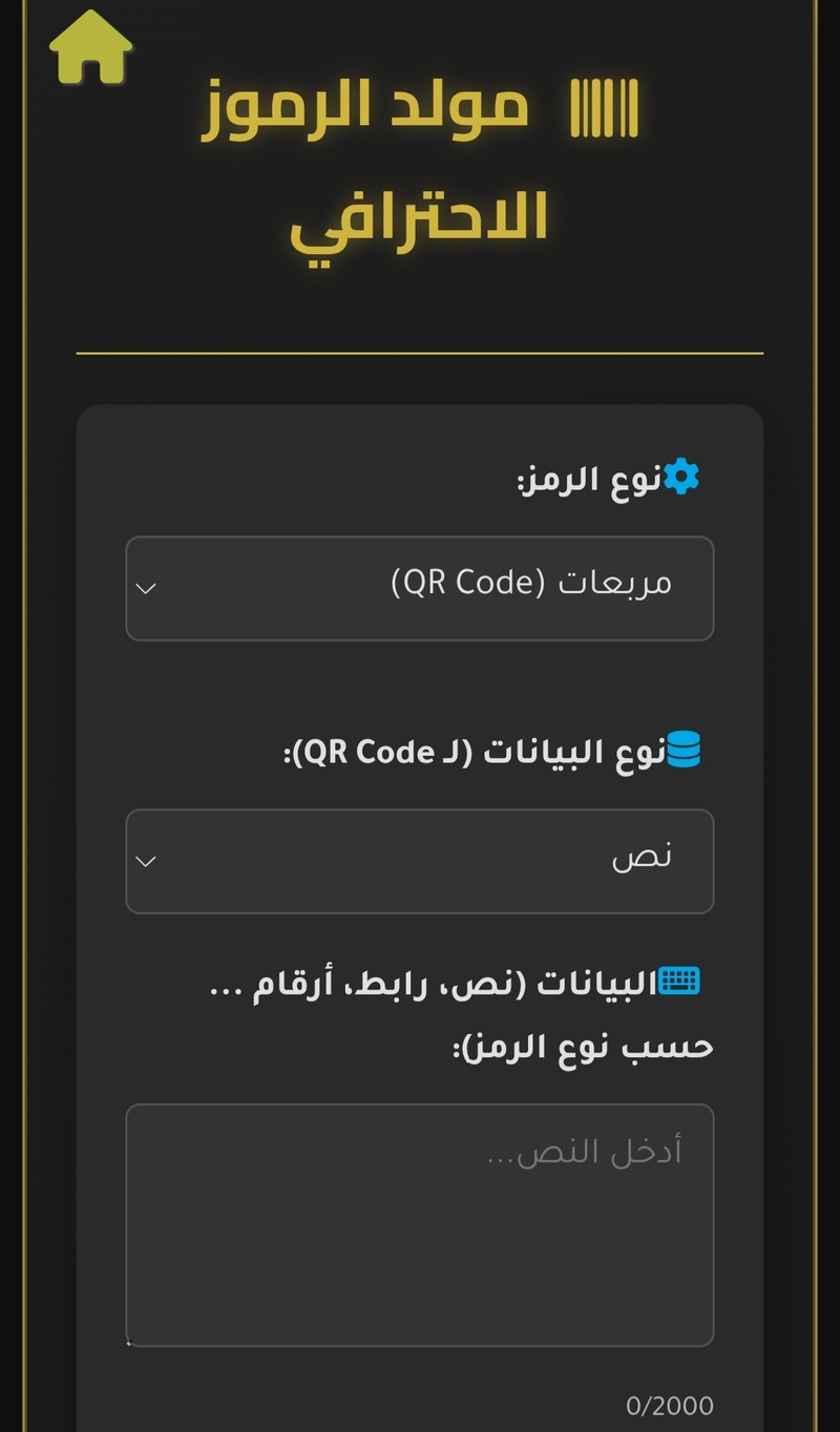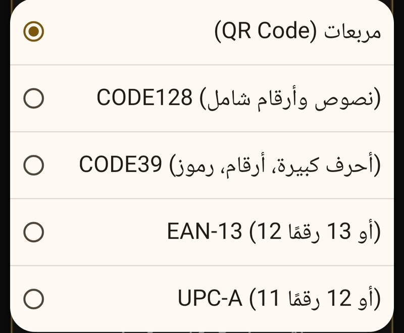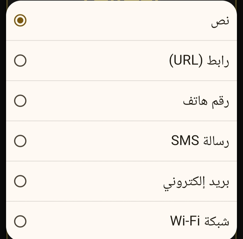 ويمكنك ايضا اختيار نوع البيانات مثلا نص او رقم هاتف عند مسح الباركود يتم تحويلك الى تطبيق الاتصال مباشر