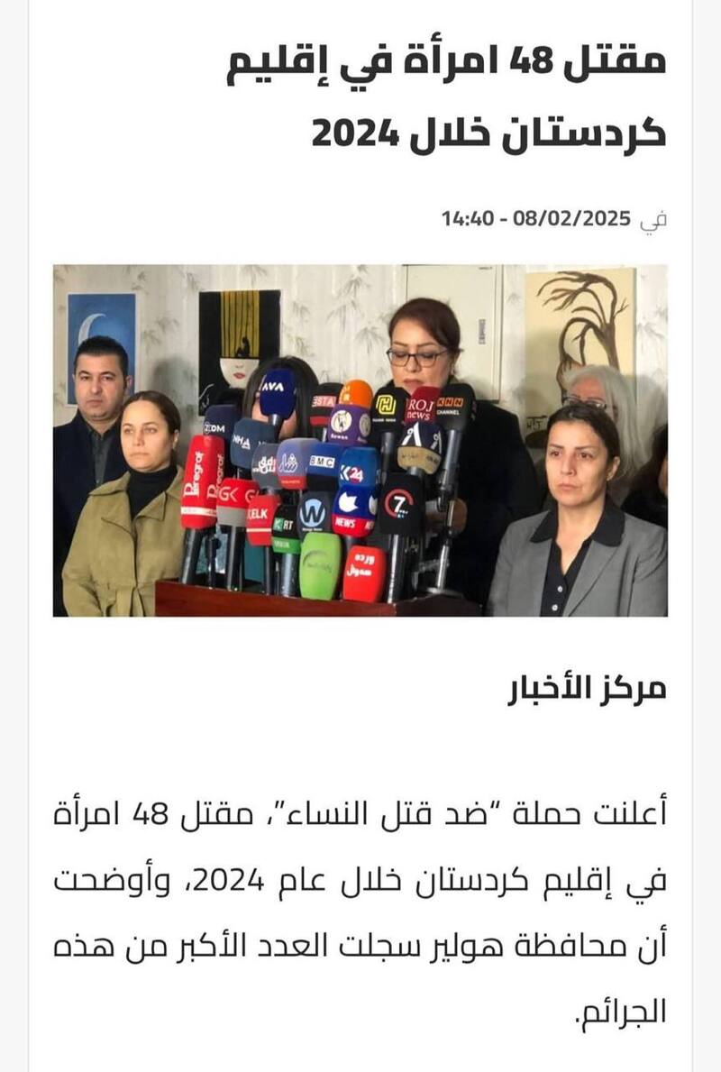 جيوش الناشطين الاعلامية والصحفيين المزيفين وينهم عن هاي الاحصائيات وعمليات القتل المثبته تجاه النساء في كوردستان؟ ليش ما شفنا وقفه احتجاجيه للمطالبة بالكشف عن قتلة جمع النساء هذا؟