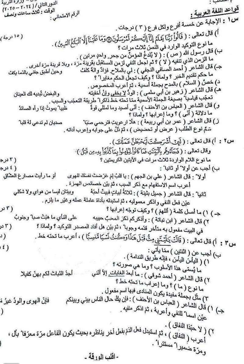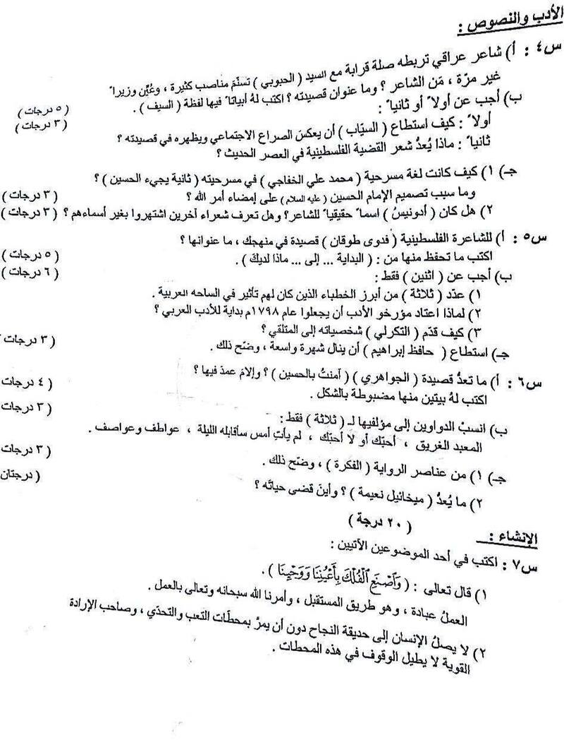 أسئلة اللغة العربية لطلبة السادس العلمي الدور الثاني/2025