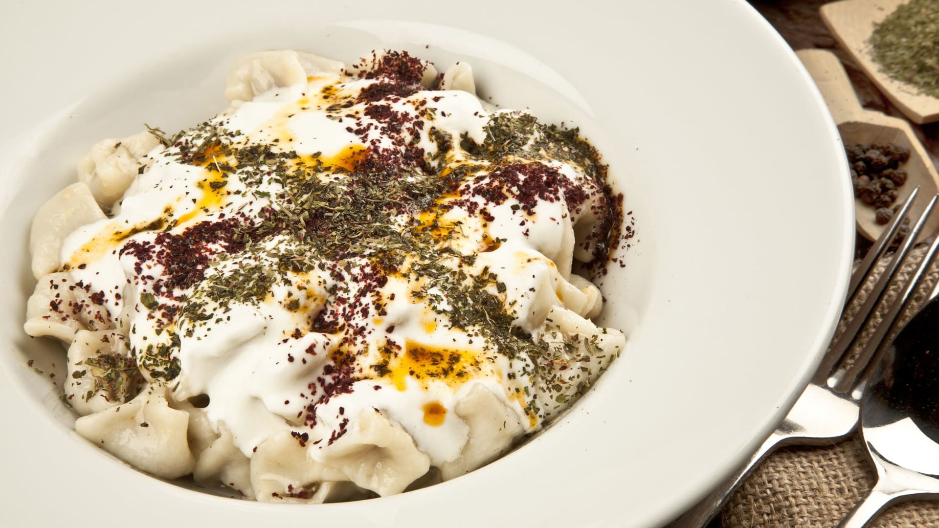 تُؤكل زلابيات "مانتي" مع الزبادي.Credit: Shutterstock