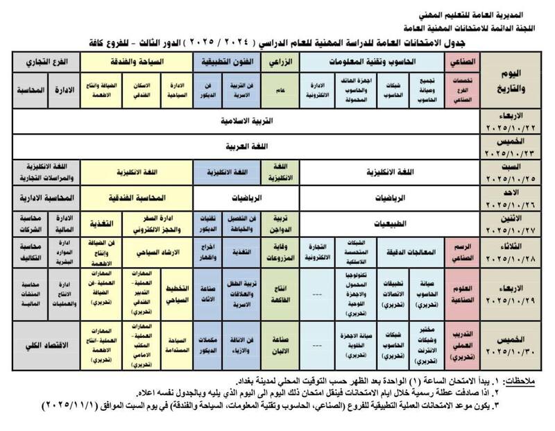 المديرية العامة للتعليم المهني تعلن جدول الإمتحانات العامة للدراسة المهنية/ الدور الثالث للعام الدراسي ٢٠٢٤_٢٠٢٥ للفروع كافة.