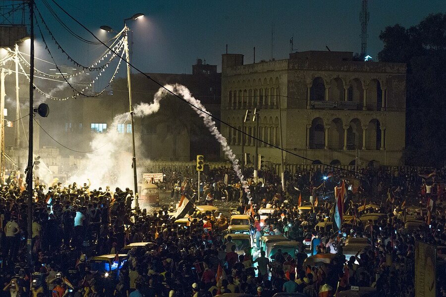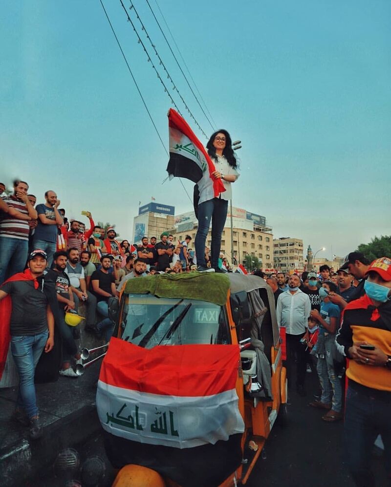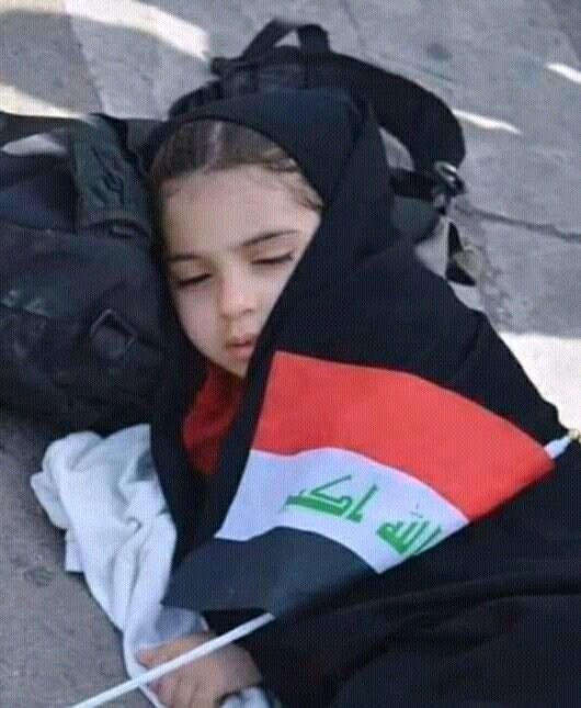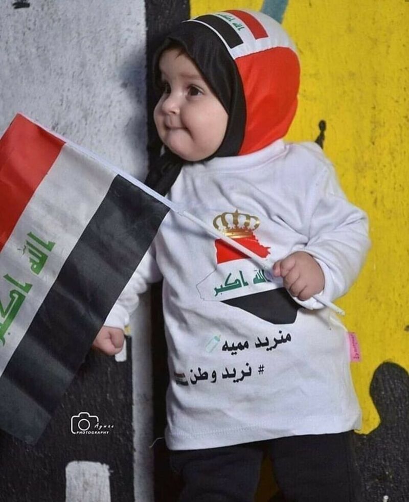 طالب يحمل العلم العراقي في المسيرات الطلابية المساندة للمتظاهرين يوم 2-11-2019