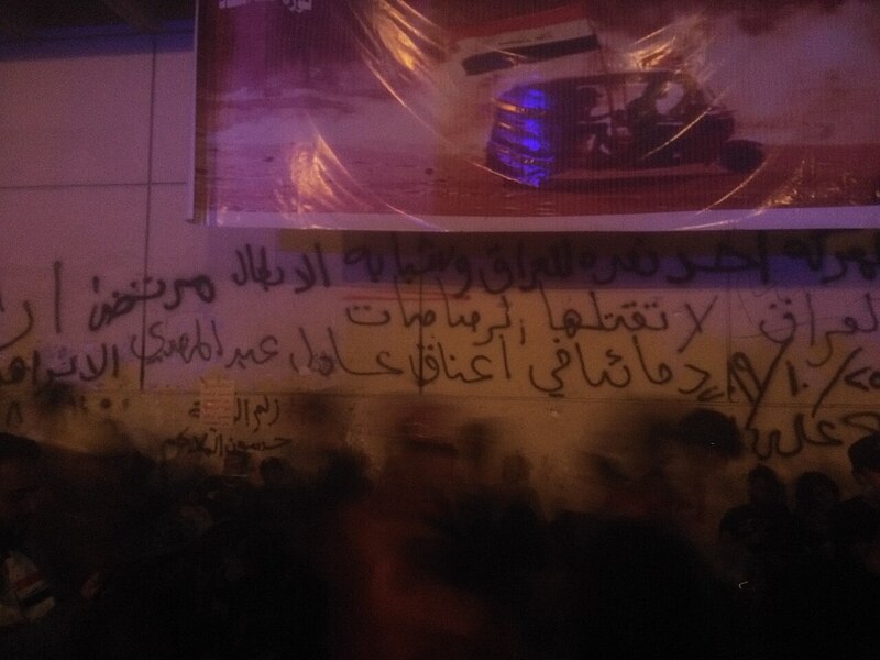 كتابات على حائط المبنى التُركي، تضمنت، "دمائنا في أعناق عادل عبد المهدي"