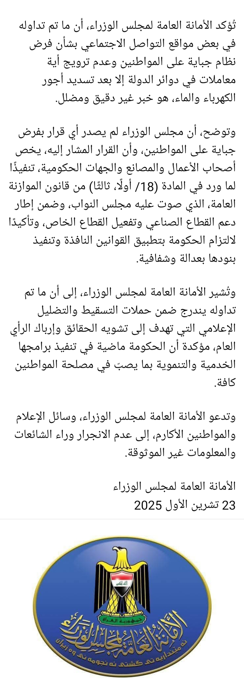 الحكومية بتقديم فواتير الخدمات. وهذا يعني أن القرار صدر