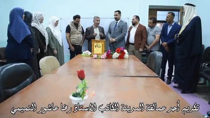 اقيم الاحتفال بتوديع المترجم على قاعة (مكتبة المثنى العامة) في (أبو غريب) وقدم لهُ درع (الابداع) من بعد اللقاء الودي معه.