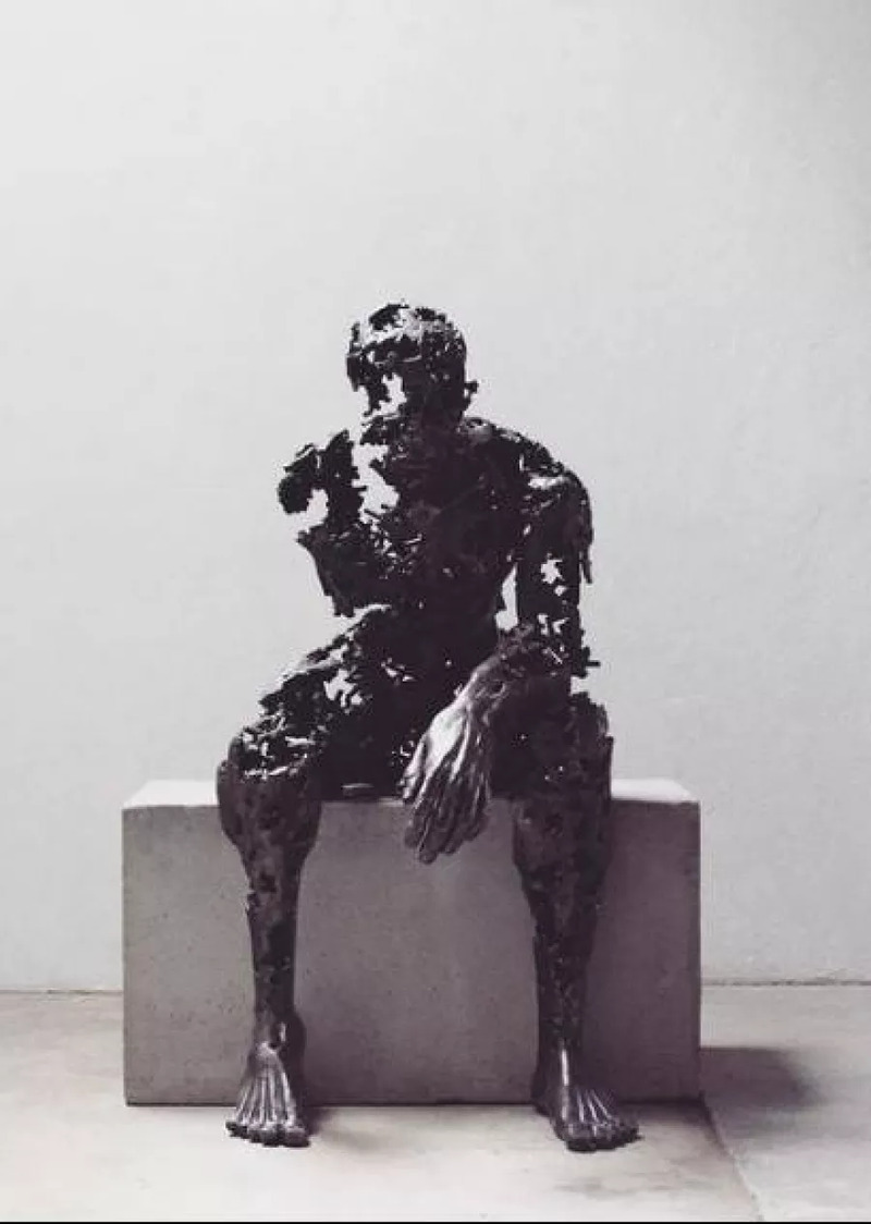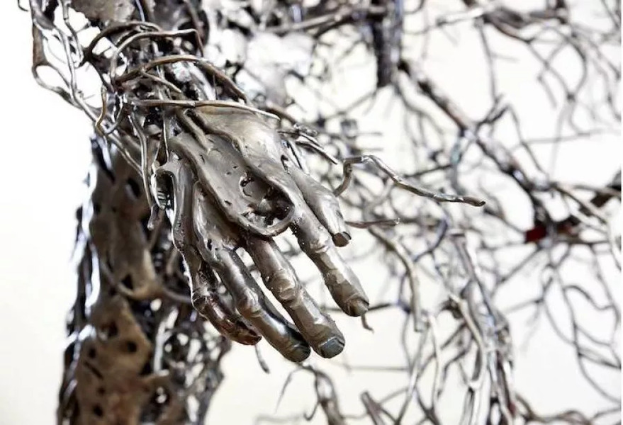 لطالما انجذب الفنان إلى التعامل مع هذه الأنواع من المفاهيم في عمله، تلك التي تفضح هشاشة الجسد وكيف تؤثر التغييرات الدقيقة والجذرية فيه، حيث تقطع الفروع والأجزاء الهندسية والمساحات العارية الأشكال غير الموصوفة المتطارية ، وتعمل بمثابة استعارة لعدم استقرارها العقلي والجسدي ، والذي يعبر عنه من خلال الحالة غير المستقرة لمنحوتاته الفولاذية الكاسحة، فتجتمع الأعمال المجزأة والمتضخمة بين المواد التي لا تتزعزع مع الحركة المتأصلة في أوضاع الشخصيات وأشكال ملابسهم. كل جسم من أجسادهم غير مكتمل ، سواء من خلال طرف متطاير أو فجوة في مساحة الجسد، أو جزيئات متباعدة أو متلاصقة أو متطايرة حتى التلاشي.