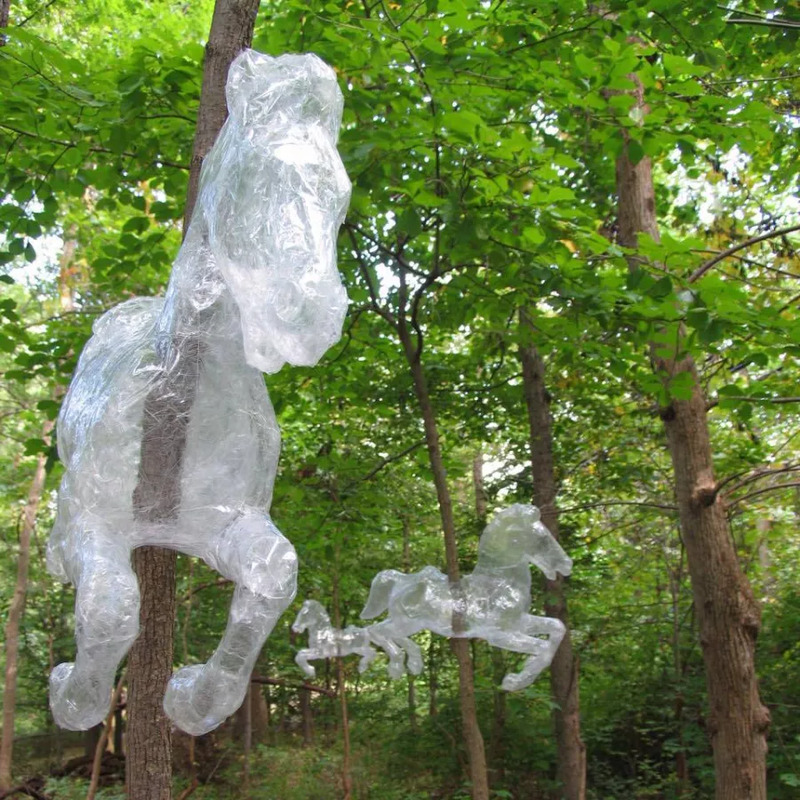 • منحوتات من شريط تغليف شفاف ولفافة بلاستيكية