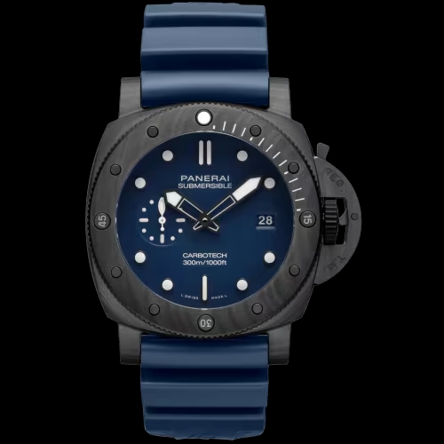 تجسّد بانيراي سابمرسيبل كوارنتا كواترو كاربوتيك (PAM1232) روح القوة والابتكار في ساعة غوص عصرية بقطر 44 مم، صُنعت علبتها وإطارها من مادة كاربوتيك فائقة الخفة والمقاومة، والمستوحاة من ألياف الكربون.