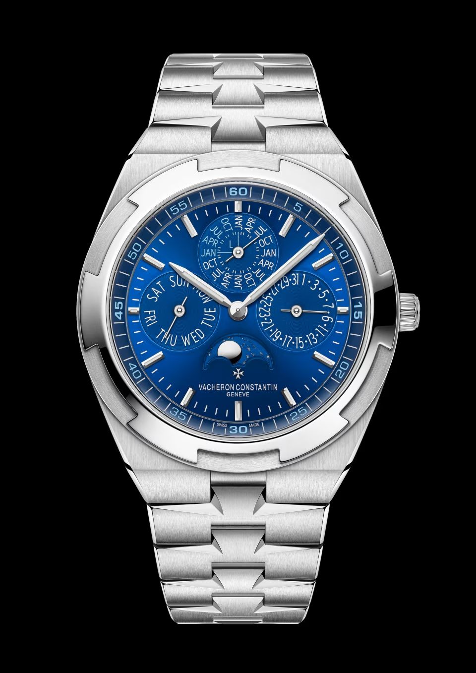 تجمع هذه الساعة من فاشرون كونستانتين بين الفخامة الرفيعة والطابع الرياضي العصري، وهي مصنوعة من الذهب الأبيض عيار 18 قيراطًا وبسماكة لا تتجاوز 8.10 ملم، ما يجعلها من أنحف الساعات المزودة بتقويم دائم يعرض التاريخ الصحيح حتى عام 2100.