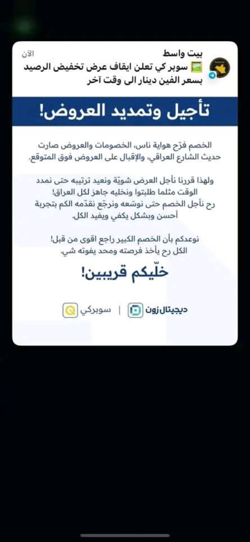 المشاركة الأصلية كتبت بواسطة وسـام اكو عرض تشتري 25 الف رصيد بألفين دينار العرض من ساعة 12 لساعة 2 وقف عد من للكل