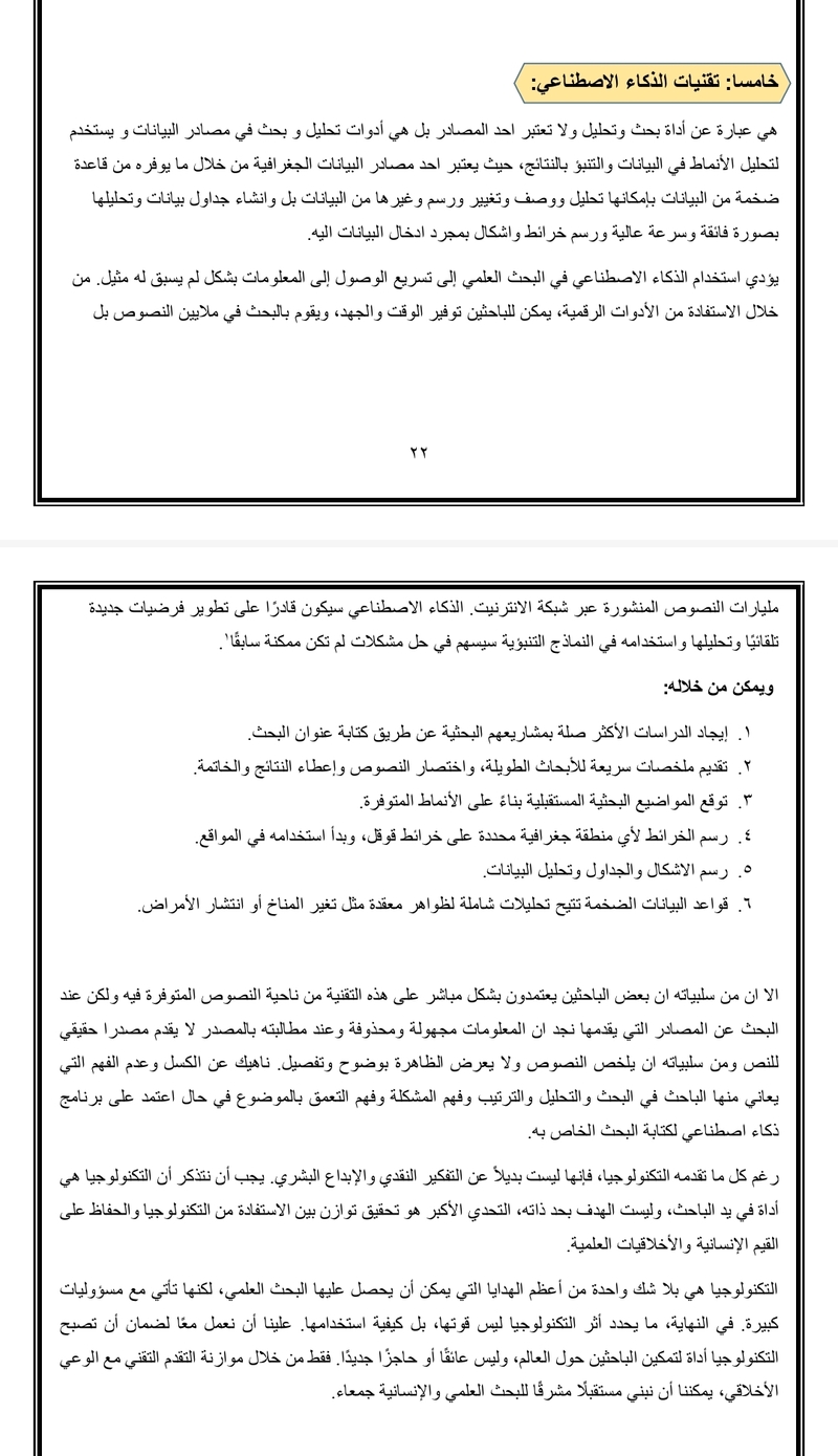 هذا يتوقف على عاتق الجامعات،، اقامة ندوات تعريفية بالذكاء الاصطناعي لتجنب الاستخدام الخاطئ ولتسهيل مهمة الباحثين لدرجة انه ما راح يأثر عن لمسة الباحث وطريقته بكتابة البحث