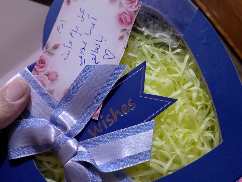 عموما جائني قبل دقائق سبطي آدم العبيدي حاملا معه علبة أنيقة جميلة تحمل هدية جميلة بقيمتها المعنوية ..حيث قدمها لي بكل أريحية وبراءة لجده الذي يحبه ويقدره جدا جدا جدا .
