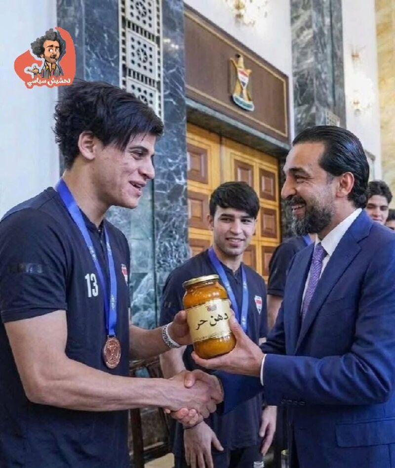 الحلبوسي يقدم هدايا للاعبين المنتخب الوطني بمناسبة الفوز