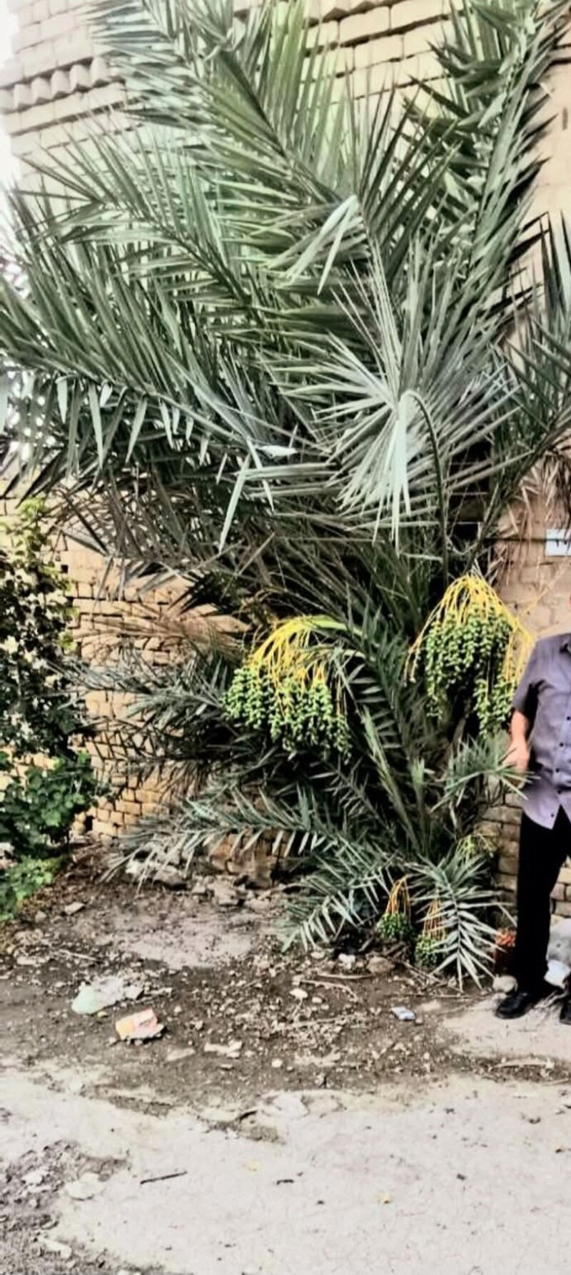 غادر أهل الدار ونبتت في الباب الذي كانوا يدخلون ويخرجون منه وأبت ان تموت وبقيت بالانتظار الى ان اعطت ( ثمارها ليصبح فيما بعد .. رطبا جنيا ) ولكن لا عوده لاهل الدار ٠٠٠ عذوق التمر تتدلى .. في الصورة الثانية ٠٠٠٠
