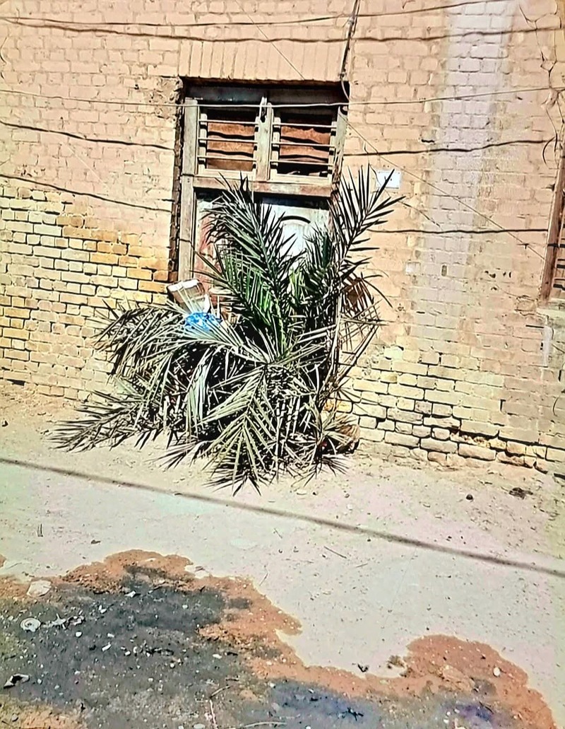 نخلة تنبت على عتبة دار مهجورة تحرس الباب وتنتظر قدوم الغائبين