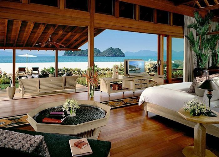 يقع فندق The Ritz-Carlton Langkawi داخل غابة مطيرة على حافة بحر أندامان .
