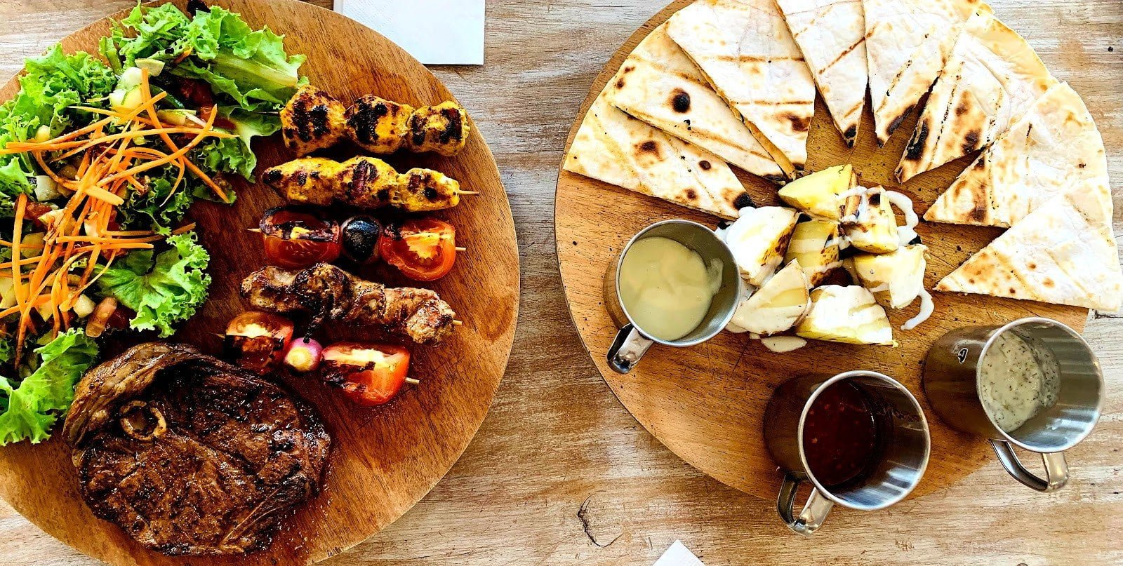 يتميز المطعم بمطبخ الشرق أوسطي العالمي , من طعام الشواء الطازج اللذيذ , مع توفر أطعمة خاصة للشخص النباتي والسلطات المميزة الشهية.