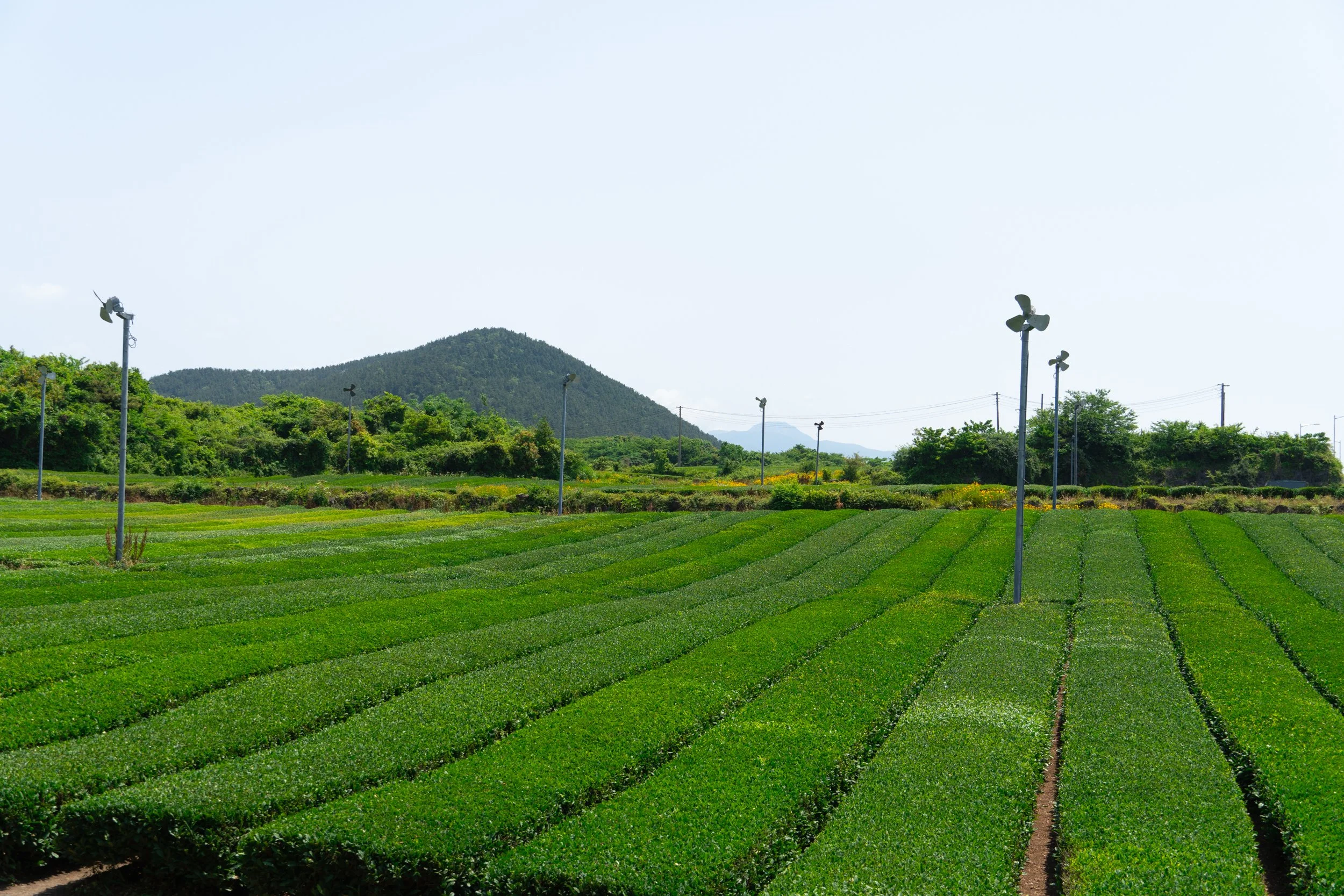 محاطة بمساحات شاي ممتدة، مع مقهى يقدم حلويات خفيفة بنكهات الشاي الأخضر. مناسبة لالتقاط صور هادئة ومريحة للعين.