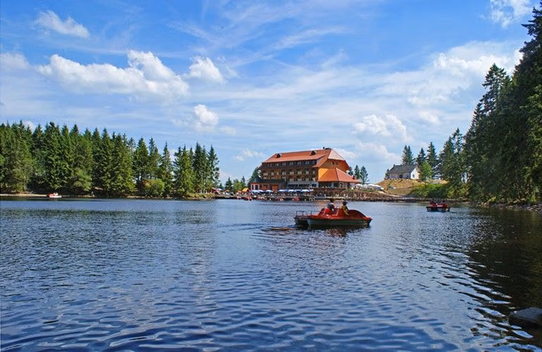 بما في ذلك يمكن للسياح الاستمتاع بالمناظر الخلابة للمناظر الطبيعية القريبة من موقع هذه البحيرة الصافي ، والذي يقع بين تلال الغابة السوداء المذهلة.