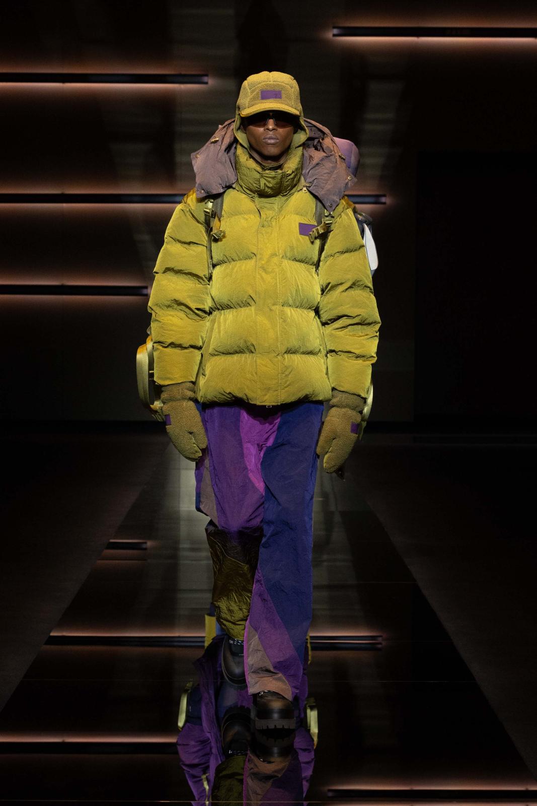 إطلالة من توقيع Emporio Armani تضيء على سترة باللون الخردليّ تقاوم درجات الحرارة المنخفضة وتنسجم مع قبّعة جميلة بتفاصيلها المدروسة وقفّازات في غاية الروعة. أمّا السروال فعمليّ ومريح ويتميز بقماشه المختار ليتلاءم مع الطقس البارد - المصدر: Emporio Armani